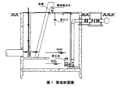 那么,有没有办法使小型污水提升泵站的电气控制系统在保证安全可靠运行的前提下,又能降低投资呢?有!那就是采用EASY取代PLC、取消上位机并由EASY.以通讯方式将所有信息传送到上一级工作站如污水处理厂中控室,由上一级工作站代偿小型污水提升泵站上位机的作用。下面,就以如图1所示的泵站为例介绍如何通过EASY实现小型污水提升泵站的控制。泵站的主要工艺设备包括:格栅2台、螺旋输送机1台、潜水泵3台(2用1备)。