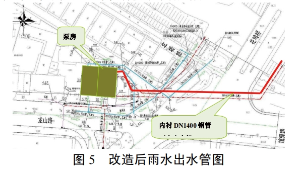 (2)充分利用泵房外部现状管道设施,通过计算和管线切改,理顺了泵房雨污水出路,改善了区域排水状况。