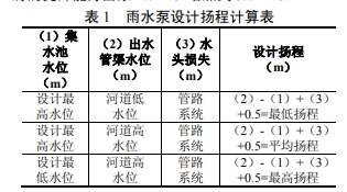 经计算,本工程雨水泵设计扬程确定为H=9.00m,校核范围为4.50~10.70m。