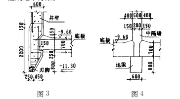(4)凹槽 凹槽位于刃脚的上方,使沉井底板和井壁能更好地连结,如图3所示。