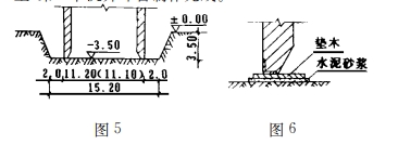 2.钢板桩或砼护壁桩支护方案 由于砂石层较深,钢板桩和砼护壁桩均难以成桩,且费用较高。3.沉井方案 将泵房地下钢筋砼结构改为沉井,在原位分2次浇筑制作,下沉就位。
