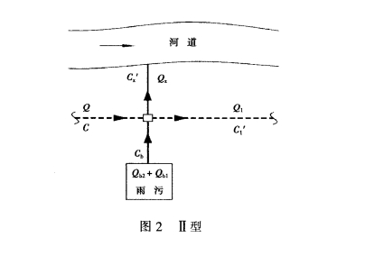 根据物料平衡原理,末端截流与源头截流两种连接形式下,被截流进人污水管的雨污混合水质量浓度C和C,存在以下数量关系: